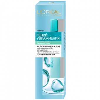 Флюид для лица "Гений Увлажнения" для нормальной и смешанной кожи - это новое поколение увлажняющих текстур , легкий аква-флюид, состоящий на 82% из очищенной воды, создан специально для нормальной и смешанной кожи. При соприкосновении с кожей моментально превращается в жидкость и впитывается в кожу, интенсивно увлажняя ее на 72 часа и не оставляя жирного блеска. Инновационный аква-флюид для лица - это альтернатива обычному увлажняющему крему. Его формула, обогащенная соком алоэ и гиалуроновой кислотой, действует на 5 слоях эпидермиса: запас влаги в коже восполняется; естественный обмен веществ в клетках активизируется; защитные функции кожи восстанавливаются.