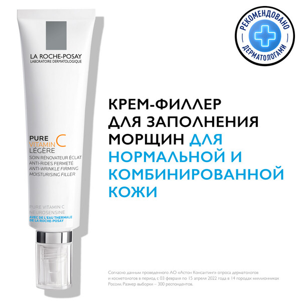 ЧИСТЫЙ ВИТАМИН С – мощный антиоксидант – стимулирует выработку коллагена, улучшает цвета лица. Содержится в формуле в концентрации 5%. ГИАЛУРОНОВАЯ КИСЛОТА и МАННОЗА интенсивно увлажняют, делают кожу более гладкой. МАДЕКАССОСИД восстанавливает межклеточный матрикс кожи, повышает упругость кожи. НЕЙРОСЕНСИН и ТЕРМАЛЬНАЯ ВОДА LA ROCHE-POSAY успокаивают даже чувствительную кожу, придают ей чувство комфорта.