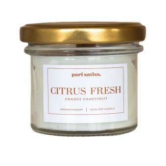 Состав: соевый воск, деревянный фитиль, эфирное масло апельсина сладкого, эфирное масло горького померанца, эфирное масло петитгрейна, эфирное масло мандарина, эфирное масло бергамота, эфирное масло грейпфрута, натуральный фиксатор.