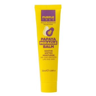Многофункциональный бальзам для губ и кожи Miracle Balm Papaya Purple Tree содержит органический экстракт папайи, сафроловое масло и витамины A и C.