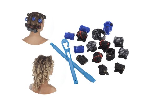 Комплектация: 8 средних бигуди (20 см), 8 длинных бигуди (30 см), крючок в разобранном виде, инструкция.