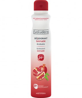 Благодаря своей формуле дезодорант EVOLUDERM с ароматом граната защищает Вас от запаха пота в течение 24 часов, не останавливая естественный процесс.