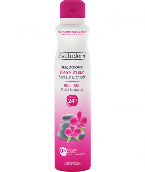 Благодаря своей формуле, дезодорант EVOLUDERM с ароматом орхидеи защищает Вас от запаха пота в течение 24 часов, не останавливая естественный процесс.