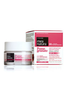 Крем дневной FARCOM Mea Natura Pomegranate Против морщин SPF15 50 мл – дневной крем легкой текстуры с органическим маслом гранатовой косточки, известным своими омолаживающими и антиоксидантными свойствами, насыщен ингредиентами анти-старения и компонентами, предотвращающими появление и разглаживающими морщины. Содержит солнцезащитный фильтр SPF15 защищает кожу от вредного ультрафиолетового излучения UVA/UVB, которое приводит к появлению морщин и преждевременному старению кожи.