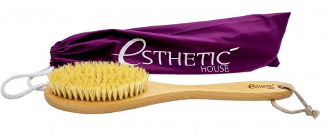 DRY MASSAGE BRUSH ДРЕНАЖНАЯ ЩЕТКА ДЛЯ СУХОГО МАССАЖА_БУК/СЕЗАЛЬ ТМ ESTHETIC HOUSE Щетка, 39 см в длину, 8 см в ширину, 4,5 см в высоту, На ручке выгравирован логотип. Щетина длиной 2,7 см Мешок сделан из полиэстера ( 80% полиэстер и 20% хлопок ), 41,5 * 13 см. Идеальное тело за месяц! Щетка из прочной древесины бука и натуральной щетины предназначена для сухого массажа (драйбрашинга) и помогает безопасно и эффективно совершенствовать кожу тела. При помощи длинной ручки щетки можно дотянуться до самых труднодоступных участков тела. Уже после нескольких процедур сухого массажа с помощью щетки кожа становится более упругой, ровной, гладкой и подтянутой. Он улучшает микроциркуляцию, способствует удалению мертвых клеток с поверхности кожи, выводу из организма шлаков и токсинов. Сокращает выраженность целлюлита и растяжек. Кроме того, это очень приятная и расслабляющая процедура. При ежедневном применении щетка омолодит вашу кожу уже к окончанию первого месяца!