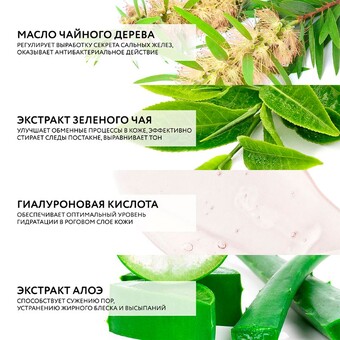 Инновационный продукт, который помогает очистить кожу от ежедневных загрязнений, устранить излишки кожного жира и сохранить баланс влаги. Гель содержит комплекс биосахаридов, который восстанавливает липидный баланс. Галактуроновая кислота в составе биосахаридов тонизирует и наполняет кожу влагой. Зеленый чай является мощным антиоксидантом и помогает защитить кожу от вредных воздействий окружающей среды. Гель бережно удаляет загрязнения и макияж, не раздражая кожу и не нарушая ее естественный баланс. Он помогает устранить жирный блеск и матирует кожу, придавая ей здоровый и свежий вид.
