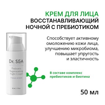 Эффективная формула ночного средства на основе комплекса пребиотиков и биотина способствует активному омоложению, повышению уровня упругости и эластичности кожи, улучшению микробиома. Пребиулин нормализуют состояние гидролипидной мантии, помогает нейтрализовать признаки усталости, несовершенства и морщины. Биотин укрепляет естественную защиту кожи, формирует надежный барьер от негативного воздействия среды и предотвращает признаки фотостарения. Экстракты зеленого чая и кактуса-опунции обеспечивают антиоксидантное действие, успокаивают и выравнивают тон. Масло авокадо в сочетании с маслами жожоба и ореха ши способствуют интенсивному питанию кожи, восполняют недостаток витаминов, макро- и микроэлементов, помогают устранить сухость.
