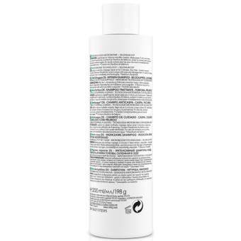 Впервые Лаборатории VICHY DERCOS выявили, что причина появления перхоти не только рост бактерии Malassezia, но и дисбаланс всего микробиома кожи головы (совокупность микроорганизмов, в норме присутствующих на коже). Этот дисбаланс усиливается под воздействием таких факторов, как агрессивная внешняя среда, экология, стресс, усталость. Технология с Селеном DS- самым эффективным ингредиентом против перхоти восстанавливает микробиомный баланс кожи головы: бактериальный баланс, предотвращение зуда, восстановление барьерных функций. МИКРОБИОМНАЯ ТЕХНОЛОГИЯ УСТРАНЯЕТ ВИДИМУЮ ПЕРХОТЬ С ПЕРВОГО ПРИМЕНЕНИЯ. СЕЛЕН DS эффективно снижает рост и размножение грибка Малассезия, нормализует микробиом кожи головы. КЕРАМИД Р повышает барьерные свойства волос и их устойчивость к воздействию внешних факторов. САЛИЦИЛОВАЯ КИСЛОТА мягко отшелушивает ороговевшие клетки кожи головы. ВИТАМИН Е естественный антиоксидант, борется с действием свободных радикалов и обладает противовоспалительными свойствами. УНИКАЛЬНЫЙ АРОМАТ ДЛЯ ПРИЯТНОГО ИСПОЛЬЗОВАНИЯ, БЕЗ НЕПРИЯТНОГО ЗАПАХА СЕЛЕНА. Верхние ноты: Медовая дыня, Мандарин, Фиалка. Сердечные ноты: Розмарин, Белые цветы, Магнолия. Базовые ноты: Амбра, Сандал Без парабенов. ТЕКСТУРА: Мягкая кремовая текстура.