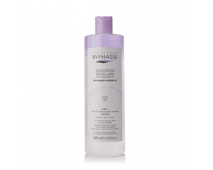 Водостойкий двухфазный мицеллярный раствор BYPHASSE – это очищающая вода последнего поколения, которая сочетает в себе две фазы: водную фазу с мицеллами (мелкими поверхностно-активными частицами), которая очищает и освежает кожу, и масляную фазу, которая помогает удалить самый стойкий водостойкий макияж на лице, глазах и губах. Данная комбинация мицелл, содержащихся в водной формуле, и масляной фазы обеспечивает идеальное очищение без жирного эффекта и смывания. Средство 4 в 1, поскольку эффективно очищает, удаляет макияж, восстанавливает и смягчает кожу лица. Формула, адаптированная для всех типов кожи, даже самой чувствительной. В результате кожа чистая, без каких-либо следов стойкого макияжа.
