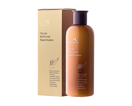 Эмульсия восстанавливающая с экстрактом настоящей Черной улитки SINABRO The real BLACK snail Repair Emulsion предназначена для восстановления и сохранения необходимого баланса кожи. Фильтрат секреции настоящей черной улитки, содержащий муцин и хондроитин, оживляет кожу, делая ее чистой и влажной. Эмульсия защищает клетки кожи за счет укрепления иммунной системы.