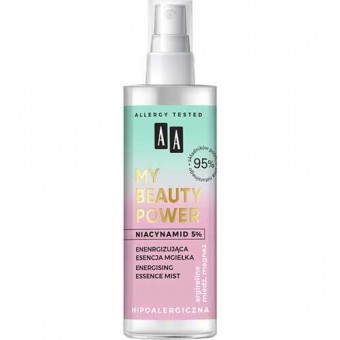 AA MY BEAUTY POWER NIACYNAMID 2,5% Энергетический спрей-эссенция 100 мл. AA MY BEAUTY POWER - это инновационное сочетание естественной антиоксидантной силы растительных экстрактов и биоактивных молекул: ниацинамида и пептидов, которые одновременно заботятся о здоровье и красоте вашей кожи. Благодаря этой синергии устраняются все недостатки кожи и первые признаки старения. Энергетический спрей-эссенция мгновенно освежает, тонизирует, увлажняет и успокаивает кожу, придавая ей естественное сияние. Активные ингредиенты: - Ниацинамид 5% - эта форма витамина B3 повышает упругость и эластичность, устраняет дефекты и угри, сохраняет влагу в эпидермисе, осветляет пигментные пятна и имеет свойства против морщин. - Аргирелин - нейропептид, расслабляющий микромышцы кожи и разглаживающий мимические морщинки. - Медь, Магний, Цинк - коктейль из минералов влияет на внешний вид и состояние кожи, улучшает гидратацию, эластичность и снижает количество выделяемого кожного сала. Способ применения: Распылите спрей на кожу, закрыв веки, с расстояния около 20 см. Затем нанесите бустер и / или крем. Вы также можете использовать спрей днем даже для макияжа, чтобы освежить цвет лица.