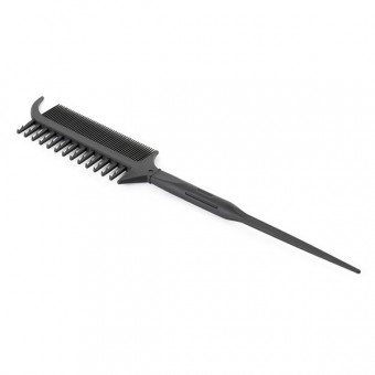 Многофункциональная расческа с хвостиком для мелирования. Облегчает и ускоряет процесс мелирования. Карбоновая термостойкая, прочная, при этом очень легкая. Двусторонняя расческа с зубьями неодинакового шага: половина расчески с учащенными (для расчесывания отдельной пряди), другая – с разреженными (для быстрого отделения мелких прядей для мелирования). Крючки разного размера на одной из сторон расчески позволяют отобрать пряди разной толщины.