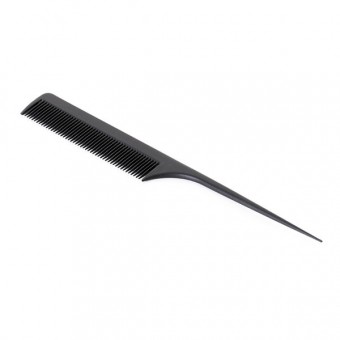 Карбоновая антистатическая расческа с короткими зубьями и коротким хвостиком. Позволяет брать тонкие пряди и равномерно распределять краску. Отличный помощник при создании плетеных причесок. Термостойкая, прочная, при этом очень легкая.