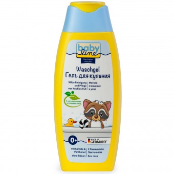 Нанесите гель для купания на руку, немного вспеньте водой и распределите по влажным волосам и телу ребенка. Затем хорошо промойте водой.