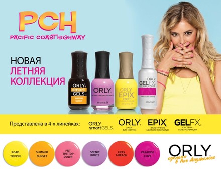 Новая ультрамодная коллекция лаков для ногтей Pacific Coast Highway создана специально для смелых модниц, их самых запоминающихся weekend-ов, нескончаемых прогулок по побережью и зажигательных пляжных вечеринок. Окунитесь в водоворот солнечных мыслей вместе с оттенками лаков для ногтей коллекции PCH от ORLY!