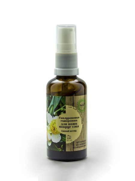 Натуральная сыворотка "Свежий взгляд" с гиалуроновой кислотой создана специально для нежной кожи вокруг глаз. Её особый состав позволяет устранить отёки и препятствует их появлению, разглаживает мелкие морщинки, питает и увлажняет кожу век, а также отбеливает её, устраняя тёмные круги под глазами.