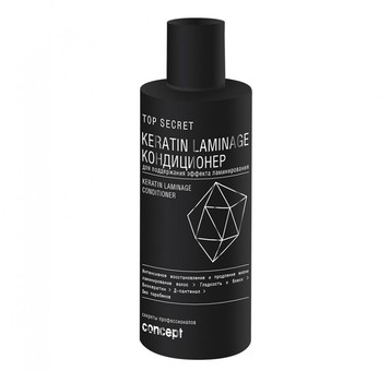 Применение: мягкими разглаживающими движениями нанесите кондиционер на предварительно вымытые Шампунем (Keratin Laminage Shampoo) волосы. Аккуратно, стараясь не деформировать форму и структуру волос, распределите кондиционер по всей длине и оставьте на 5-7 минут. Смойте кондиционер водой.