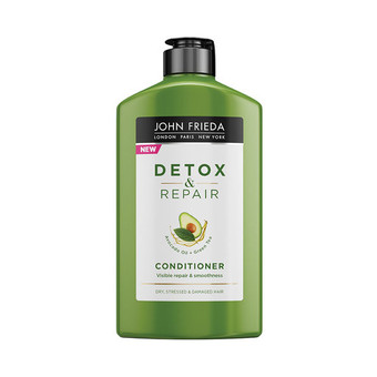 Возвращает к жизни сухие и тусклые волосы. Деликатно очищает и глубоко питает. Кондиционер Detox&Repair обеспечивает ослабленным волосам глубокое увлажнение и восстановление, формирует необходимый барьер от будущих повреждений для сохранения необходимой гладкости и прочности. Специальная коллекция ухода за волосами Detox&Repair от John Frieda легко освобождает волосы от нежелательных загрязнений и создает идеальную основу для заметного восстановления волос, мгновенно возвращает им жизненную силу. Detox&Repair преображает сухие и ослабленные волосы, становится для них источником гладкости и блеска, красоты и здорового внешнего вида.
