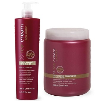 Кондиционер для окрашенных волос Color Perfect Conditioner с новым кристаллизирующимся хроматическим составом, обогащенным золотом, алмазным и рубиновым порошком и пигментами, разглаживает кутикулу волос, защищает, делает волосы объемнее и освежает косметический цвет волос, улучшая его стойкость.