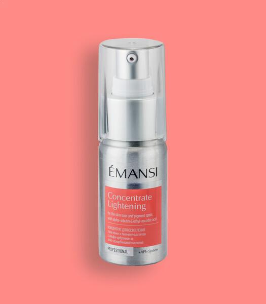 После процедуры очищения кожи лица утром нанесите небольшое количество концентрата на пигментные пятна или на все лицо по массажным линиям. После нанесения концентрата необходимо применять средства для макияжа с SPF или Мягкую эмульсию для кожи лица. Защита от солнечных лучей А и В. SPF 30. Emansi+AРh System