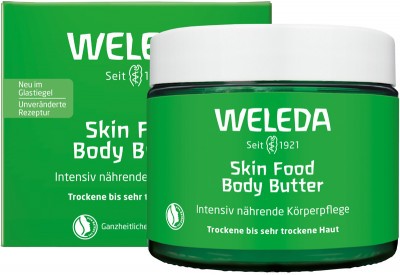 Открой для себя Weleda Skin Food — натуральное супер питание для сухой и очень сухой кожи. Высокоэффективная рецептура восстанавливает защитный барьер кожи, увлажняет и уменьшает шелушение, даря коже природную мягкость. Это натуральные средства для сухой, огрубевшей кожи, на основе натуральных масел, обогащенные экстрактами ромашки, календулы, розмарина. Они глубоко питают, увлажняют и восстанавливают сухие участки кожи, быстро возвращают мягкость, гладкость и естественную нежность.Попробуете раз — полюбите навсегда.Skin Food баттер для тела имеет нежную текстуру взбитых сливок, тающую на коже, и дарит ей роскошный уход. Попробуйте «зафиксировать» влагу в коже после ванны или душа и побаловать свои чувства.Качество и натуральный состав Skin Food Body Butter подтверждены сертификатом NaTrue. Правильное питание кожи – залог твоей красоты и здоровья на долгие годы. Weleda Skin Food Body Butter — новый must-have, созданный самой природой.