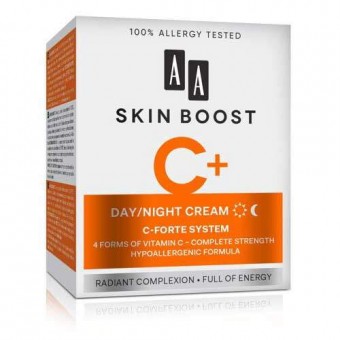 AA Skin Boost C+ Дневной и ночной крем с коллагеном и гиалуроновой кислотой рекомендуется для ежедневного антиоксидантного ухода, обеспечивающего осветление кожи и тонизирующего эффекта. Это сделает вашу кожу здоровой, сияющей и увлажненной. В результате сияющая, увлажненная, наполненная энергией кожа, здоровый, свежий и отдохнувший вид, защищенная от вредных внешних факторов.