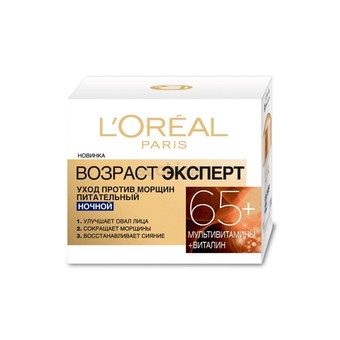 Крем против морщин "Возраст эксперт" ночной L'Oreal Paris Dermo-Expertise 65+ разработали мастера известного косметического бренда специально для дам старше 65-ти лет. Активная формула средства создана с учетом всех потребностей зрелой кожи.