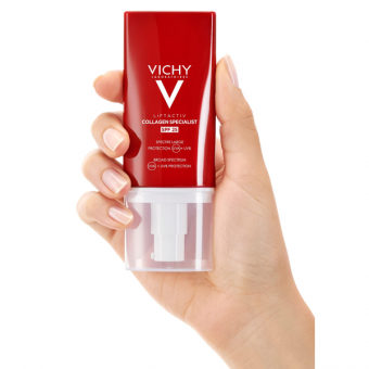 С возрастом выработка коллагена естественным образом замедляется. Под воздействием внешних факторов, таких как солнечные лучи, усиливается проявление признаков старения – появляются морщины, деформируется овал лица, появляются пигментные пятна. Тон кожи может стать тусклым и неровным. Лаборатории VICHY представляют крем Liftactiv Collagen Specialist SPF 25. Благодаря содержанию активных ингредиентов натурального происхождения и UV- фильтров, крем оказывает мощный эффект лифтинга и защищает кожу от солнечного излучения, стимулируя выработку коллагена. Сокращает морщины. Борется с пигментными пятнами. Ремоделирует контуры лица