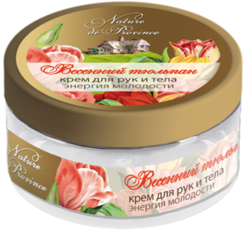 Насыщенный шелковистый крем для рук и тела с комплексом «витаминов красоты» А, Е, F наполняет кожу энергией молодости, придает упругость и эластичность. Благодаря уникальной, тающей текстуре крем мгновенно впитывается. Насладитесь необыкновенно нежным ароматом весеннего тюльпана Прованса.