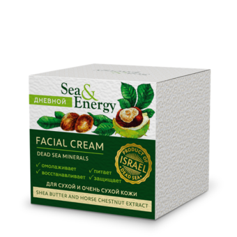 Масло плодов конского каштана надежно защищает кожу от вредных внешних факторов, улучшает обменные процессы в клетках и выравнивает цвет лица. Регулярное применение крема в комплексе с дополнительными средствами “Sea&Energy” оздоравливает кожу лица, устраняет чувство стянутости и сухости.