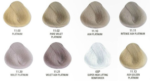 Кроме того, в палитре присутствуют усилитель цвета для красных оттенков и усилитель осветления (для усиления осветления на 1 уровень). Эти усилители можно использовать с любым оттенком из палитры, исключая платиновые цвета.