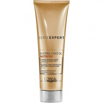 Питательный крем-уход для горячей укладки Nutrifier обеспечивает безупречную термозащиту при температуре до 230 °С. В его составе – натуральное кокосовое масло и глицерин, мгновенно придающие волосам прочность и эластичность. Невесомая текстура мгновенно впитывается, обеспечивая глянцевый блеск. Средство подходит для сухих и пористых волос.