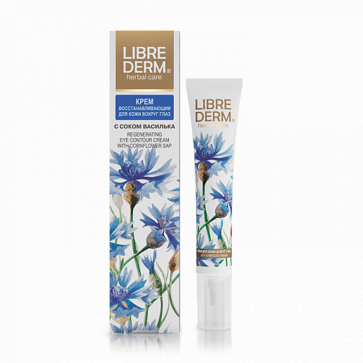 Либридерм Крем с васильком для кожи вокруг глаз создан, чтобы восстановить упругость дермы, вернуть ей свежесть и сияние. Мощные увлажняющие, тонизирующие и противоотечные компоненты предотвращают появление морщинок и мешков под глазами, стимулируют естественную регенерацию кожи. При регулярном применении крема улучшается микроциркуляция в области контура глаз, исчезают темные круги, восстанавливается коллагеново-эластиновая матрица. Кожа остается свежей и молодой благодаря защите от действия свободных радикалов.