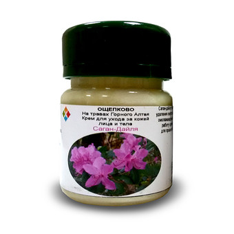 Саган-дайля (Рододендрон Адамса) способствует регенерации и заживлению кожи. Применяется для удаления возрастных пигментных пятен. Обладает выраженным антивозрастным омолаживающим эффектом. Увлажняет, питает, смягчает кожу. Крем улучшает работу кровеносных сосудов, питающих кожу кислородом, необходимым для правильной клеточной регенерации, стимулирует венозный кровоток.