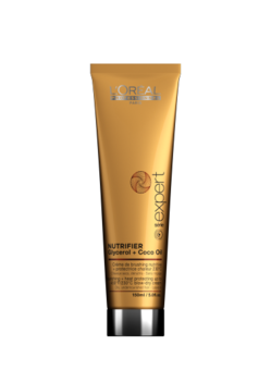Питательный крем-уход для горячей укладки Nutrifier обеспечивает безупречную термозащиту при температуре до 230 °С. В его составе – натуральное кокосовое масло и глицерин, мгновенно придающие волосам прочность и эластичность. Невесомая текстура мгновенно впитывается, обеспечивая глянцевый блеск. Средство подходит для сухих и пористых волос.