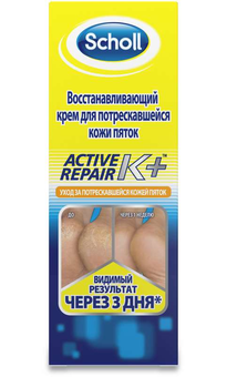 Восстанавливающий Крем для Потрескавшейся Кожи Пяток Active Repair K+™ способствует активному естественному восстановлению грубой, сухой, потрескавшейся кожи на пятках. Природный кератин, полученный по технологии Active Repair K+™ , значительно ускоряет заживление трещин. Первый результат виден уже через 3 дня применения. Увлажняющие компоненты (карбамид) придают коже эластичность. Ланолин создает пленку, препятствующую потере жидкости из тканей. Антибактериальные компоненты предотвращают инфицирование ранок. Эффективность подтверждена клиническими испытаниями. Дерматологически протестирован.