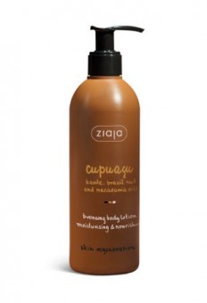 Бронзирующий лосьон для тела с маслом купуасу и карите обладают регенерирующими и увлажняющими свойствами, укрепляют защитный барьер кожи и укрепляют ее. Масла бразильского ореха и макадамии смягчают и разглаживают эпидермис. Придает тонкий, нежный загар.