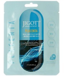 Маска для лица, пропитанная эссенцией, обогащенной фитоплацентой соевых бобов – косметический продукт двойного действия на основе ферментированной плацентарной вытяжки. Плацента усиливает защитные свойства кожи, стимулирует кровообращение, предохраняет кожу от неблагоприятного воздействия окружающей среды. Маска Jigott Placenta Real Ampoule Mask способствует разглаживанию морщин, выравнивает тон лица, а также питает и увлажняет кожу. Активные компоненты в составе маски (гиалуроновая кислота, экстракт икры, экстракт крастного женьшеня) обладают увлажняющими и восстанавливающими свойствами. Токоферол ацетат (витамин Е) восстанавливает цвет лица, способствует увлажнению и выводит токсины.
