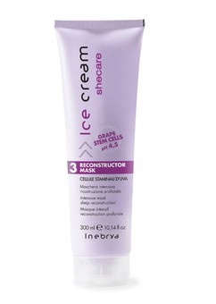 Интенсивная маска для волос с кислотной pH 4,5 разглаживает поверхность волос, проникает глубоко в структуру волос, восстанавливая сухие, подверженные внешними агрессивными факторами, а также химической, термальной и механической обработкам волосы. Особый состав маски не содержит сульфатов, солей и парабенов. Основными компонентами являются стволовые клетки винограда, кератин и хлопковое масло, которые оказывают увлажняющее действие, возвращают волосам объем, мягкость и делают волосы шелковистыми и блестящими.