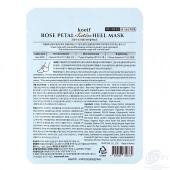 Маски-для пяток, с увлажняющей и ухаживающей эссенцией на основе экстракта цветков Розы. Маска помогает глубоко увлажнить сухую и огрубевшую кожу пяток, помогает восстановить эластичность кожи и избавиться от огрубевших частиц кожи, помогает сделать кожу мягкой и гладкой, успокаивает и освежает кожу, смягчает и постепенно удаляет огрубевшую кожу, возвращает здоровую яркость кожи.