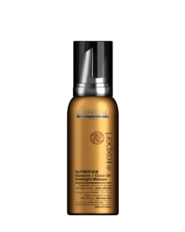 Линия Nutrifier создана специально для наполнения сухих волос дополнительными питательными веществами. В состав продуктов серии включены глицерол-комплекс и кокосовое масло. Глицерол-комплекс помогает волосам удерживать влагу и не пересушиваться в результате негативного воздействия окружающей среды. Кокосовое масло выполняет защитные функции и наполняет волосы необходимыми микроэлементами. Ночная маска L’Oreal Professional Nutrifier– мягкое питательное средство для интенсивного ухода за волосами. Ночной уход обеспечит волосам дополнительное питание в течение 12 часов и подарит на утро мягкость и шелковистость. Продукт не содержит силикона, не утяжеляет и не жирнит волосы. Одного применения будет достаточно, чтобы убедиться в том, что маска Лореаль Профешнл Нутрифайер придает волосам силу и блеск, делает их более послушными, эластичными и упругими. Состав: глицерол-комплекс, кокосовое масло.