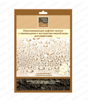Профессиональные двухфазные маски Beauty Style обладают эффективным увлажняющим воздействием. Экстракт черной икры известен как сильнейший антиоксидант: нейтрализуя свободные радикалы, он эффективным образом борется с процессом старения. Активные компоненты, входящие в состав икры, усиливают регенеративные процессы, способствуя выработке коллагена, который обеспечивает выраженный лифтинг-эффект коже. Коллаген является мощнейшим влагонакопителем: проникая в кожу, он насыщает ее влагой, разглаживая даже самые глубокие морщинки, а также способствует выработке естественного коллагена и эластина в дерме. Керамиды — молекулы, обеспечивающие усвоение клетками кожи питательных элементов маски. Кроме того, керамиды, также, как и коллаген, насыщают клетки кожи влагой. Комплекс питательных веществ в маске способствует интенсивному увлажнению кожи, предотвращая шелушения и покраснения. В состав комплекта входит маска и активный гель. В наборе 10 комплектов. Способ применения: Очистите кожу с помощью лосьона или тоника. Нанесите маску на 20-30 минут. Затем нанесите гель с экстрактом черной икры. В состав входят активные компоненты: экстракт черной икры, коллаген, керамиды, масло оливы, экстракт алоэ.