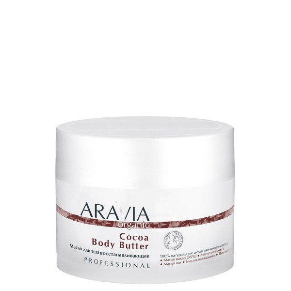 100% натуральное масло (баттер) для тела, без консервантов. В основе комплекса растительных масел – натуральное масло какао, которое повышает эластичность и упругость кожи, усиливает сопротивляемость кожной ткани к появлению стрий. Благодаря высокому содержанию насыщенных и ненасыщенных жирных кислот питает, увлажняет кожу, снижает ощущение стянутости. Способствует усилению регенерации, замедляет процесс старения. Комплекс масел миндаля, ши, ореха макадамии и витамина Е улучшает тонус, гладкость кожи, придаёт ей сияние и здоровый вид.