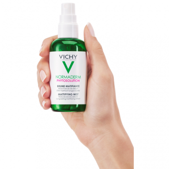 1-ый матирующий спрей-контроль жирности Normaderm Phytosolution для жирной, комбинированной кожи, в том числе чувствительной, с уникальным сочетанием ингредиентов: [ВУЛКАНИЧЕСКАЯ ТЕРМАЛЬНАЯ ВОДА] укрепляет защитный барьер и нормализует pH. [АМИНОКИСЛОТА НАТУРАЛЬНОГО ПРОИСХОЖДЕНИЯ] эффективно впитывает себум. [ГЛИЦЕРИН] смягчает и увлажняет, не допуская пересушивания Мгновенно матирует кожу, сохраняя эффект до 8 часов. Заметно сокращает жирный блеск. Протестировано под контролем дерматологов. Гипоаллергенно. Некомедогенно.
