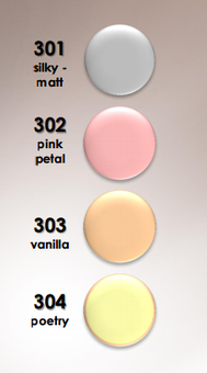 • Серый оттенок „silky-matt” 301 прекрасно подойдет в качестве основы под макияж „smoky eyes”. Темные матовые тени, нанесенные на базовый „silky-matt”, удивляют глубиной цвета, не осыпаются и идеально сохраняют выразительный и неповторимый эффект