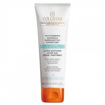 COLLISTAR Ultra Soothing After Sun Repair Treatment - Это успокаивающий после солнца восстанавливающий крем для тела, который эффективно защищает чувствительную кожу от воздействия ультрафиолетового излучения, активные компоненты средства увлажняют и питают кожу. Ultra Soothing After Sun Repair Treatment безопасно и не имеет противопоказаний к применению. Регулярное использование нежной концентрированной эмульсии придаст вашему телу ощущение свежести.