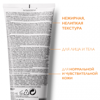 Солнцезащитное молочко для лица и тела подходит для нормальной и даже очень чувтсвительной кожи. Система солнечных фильтров обеспечивает высокую фотостабильную защиту от негативного действия UVB/UVA лучей. Средство отвечает более строгим* требованиям, чем Европейский стандарт, для предупреждения негативного воздействия UVA лучей на кожу. Содержит Термальную воду La Roche-Posay, богатую Селеном, природным антиоксидантом. *SPF/PPD 2,5 Общие правила пребывания на солнце: 1. Чрезмерное пребывание на солнце опасно. 2. Солнцезащитное средство никогда не обеспечивает абсолютную защиту. 3. Не подвергайте прямому солнечному воздействию детей грудного и младшего возраста. 4. Обновляйте защиту каждые 2 часа при длительном нахождении на солнце.