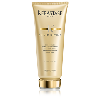 Легкая нежно-золотистая текстура Молочка Elixir Ultime мгновенно делает волосы гладкими.