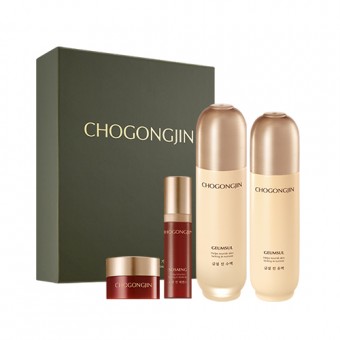 Набор состоит из 4 продуктов:Антивозрастной тоник для лица ChoGongJin Geumsul Jin Toner, 150 мл; Антивозрастная эмульсия для лица ChoGongJin Geumsul Jin Emulsion, 120 мл; Антивозрастная эссенция ChoGongJin Geumsul Jin Essence, 8мл; Антивозрастной крем для лица ChoGongJin Geumsul Jin Cream, 9мл.