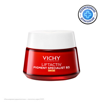 Инновация от VICHY: новый дневной крем LIFTACTIV С ВИТАМИНОМ B3 ПРОТИВ ПИГМЕНТАЦИИ SPF 50 - улучшенный эффективный антивозрастной уход с ниацинамидом (витамин B3) и пептидами в сочетании с фильтром широкого спектра SPF 50.